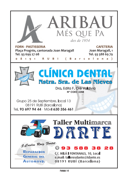 No podemos dejar de pasar la ocasión para agradecer a todos los anunciantes de la revista que ayudan al sostenimiento de nuestra Festa, sin ellos no sería posible.